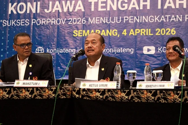 “Kita sebenarnya sangat ingin menjadi tuan rumah PON 2032. Keinginan itu juga sudah disampaikan oleh Bapak Gubernur, sehingga kami mulai menyiapkan berbagai hal untuk menuju ke sana,” jelas Sujarwanto Sabtu (4/4/2026) usai pembukaan Rapat Kerja Provinsi (Rakerprov) KONI Jateng di Semarang.
