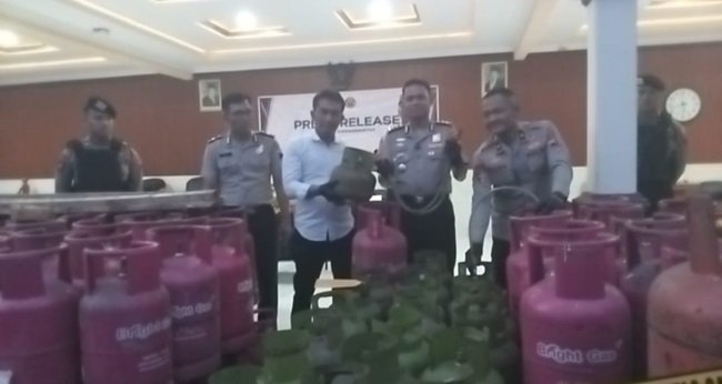 Dalam pengungkapan tersebut, polisi mengamankan tiga terduga pelaku berinisial S, HS, dan WSP. Selain itu, turut disita barang bukti berupa 268 tabung elpiji 3 kilogram, 181 tabung ukuran 12 kilogram, tujuh tabung 50 kilogram, satu karung segel tabung gas, 45 selang regulator modifikasi, serta satu unit timbangan.