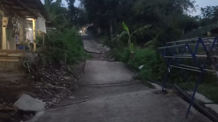 Akses menuju permukiman pun rusak parah hingga kendaraan tak dapat masuk. Warga harus menitipkan motor di lokasi yang jauh dari rumah.