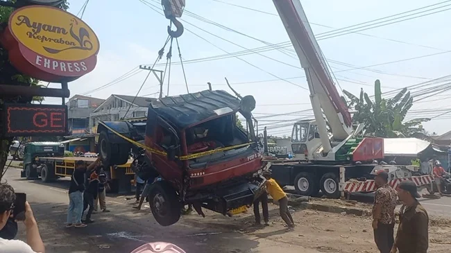 Truk kontainer yang terlibat dilaporkan bermuatan mebel, namun tujuan pengiriman masih belum diketahui.