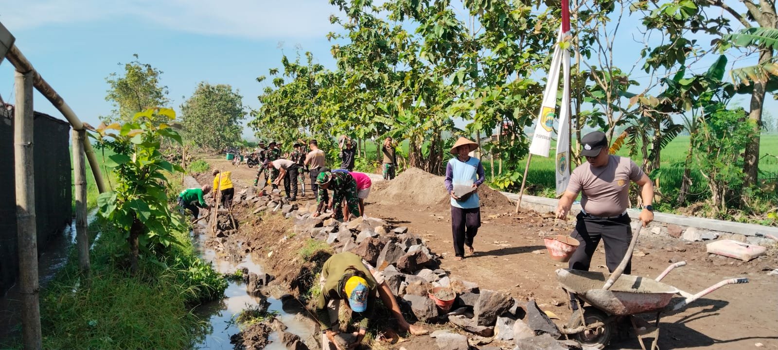 Deru alat kerja berpadu dengan canda tawa keakraban, memecah suasana dan menjadi bukti bahwa terik bukanlah penghalang. Kemanunggalan TNI dan rakyat tampak nyata dalam setiap langkah, menghadirkan perubahan bagi desa.