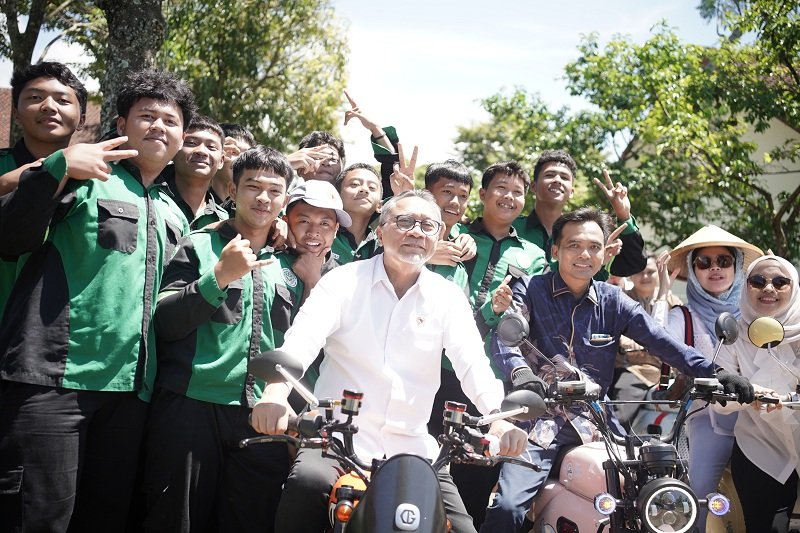 Gaya Keren Menteri Zulkifli Hasan Tunggangi Motor Listrik GODA di SMK N 1 Bawen